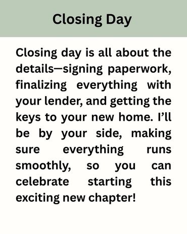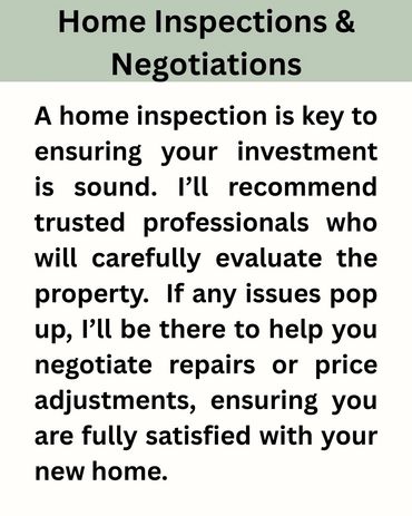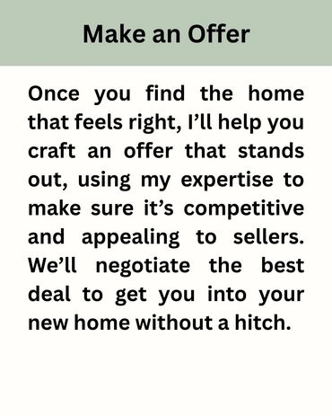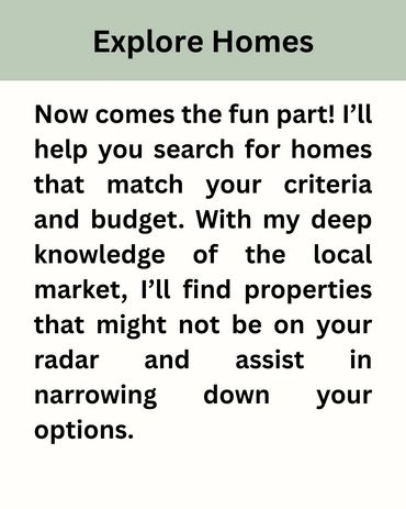 Buying a home is one of the biggest decisions you'll ever make, and having an experienced real estate agent by your side can make all the difference. With my in-depth knowledge of the local market and commitment to your needs, I’m here to help you find the perfect home where you can create lasting memories. From negotiating the best deal to guiding you through the entire process, I’ll ensure everything goes smoothly. Together, we’ll find a place you’ll love for years to come, making it more than just a house—it’ll be the foundation for your memories.